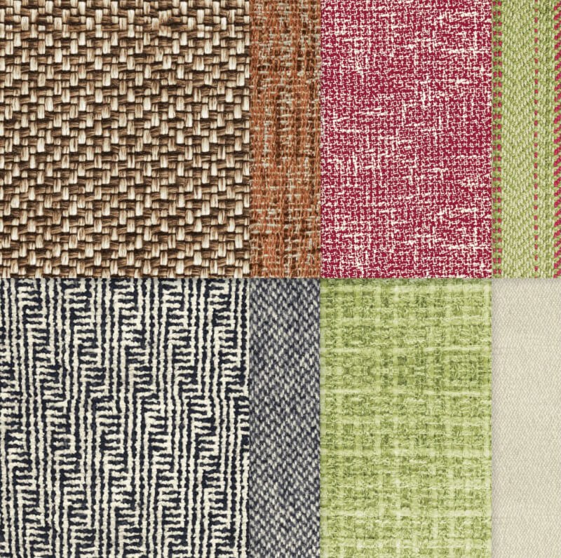 Produktfarben der Kollektion: Blaubeere, Curry-Gelb, Freesienlila, Gartengrün, Schwarz, Wassermelone