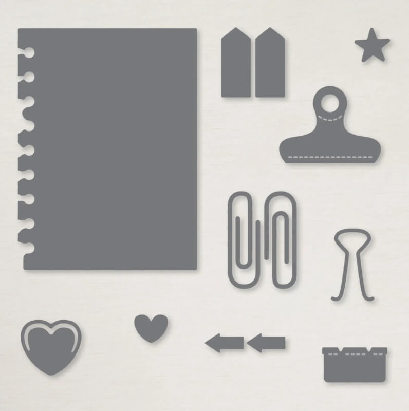 Süßes Set für Notizblöcke oder -hefte oder auch Fotoalben. Besonders schön finde ich die zusätzlichen Stanzteile, die sehr detailliert gestaltet sind.