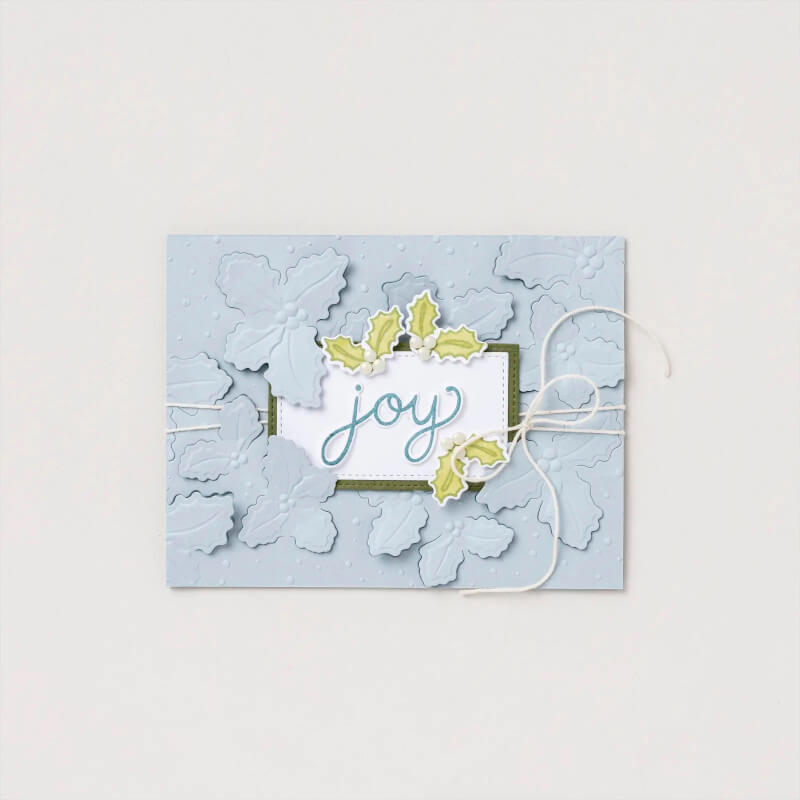 Die Hybridprägeform ist toll, so wie bisher alle diese Formen. Mit ein bisschen Geschick kannst du die Ilexblätter ausschneiden oder du nutzt sie als Kartenhintergrund und schiebst den Gruß darunter.