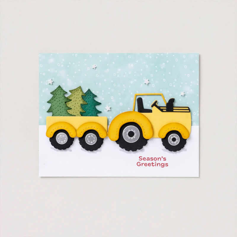 Den Stamm stempelst du davor oder du stanzt ihn mit der filigranen Stanzform aus und klebst ihn davor. Mit diversen Stanzteilen kannst du die Krone ebenfalls gestalten.