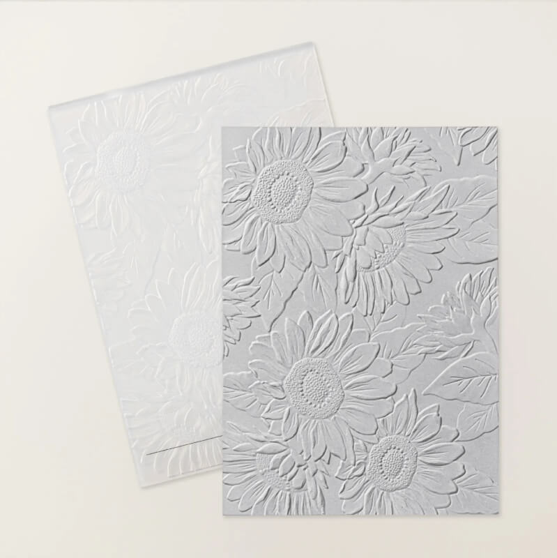 Ist die nicht schön? Du kannst die geprägten Blüten ausschneiden (Stanzformen wären auch schön gewesen), durch die Größe der Prägeform ist sie auch gut für Schachteldeckel geeignet.