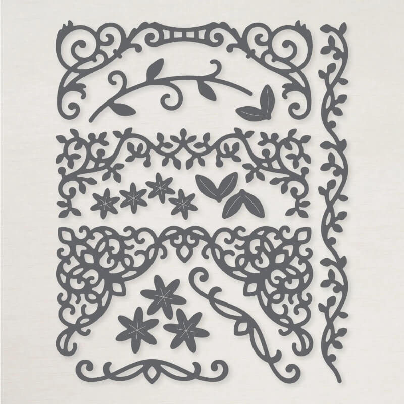 Dazu kommen ein tolles Banner, eine Stanzform für Ränder und ein fein durchbrochenes Element.
