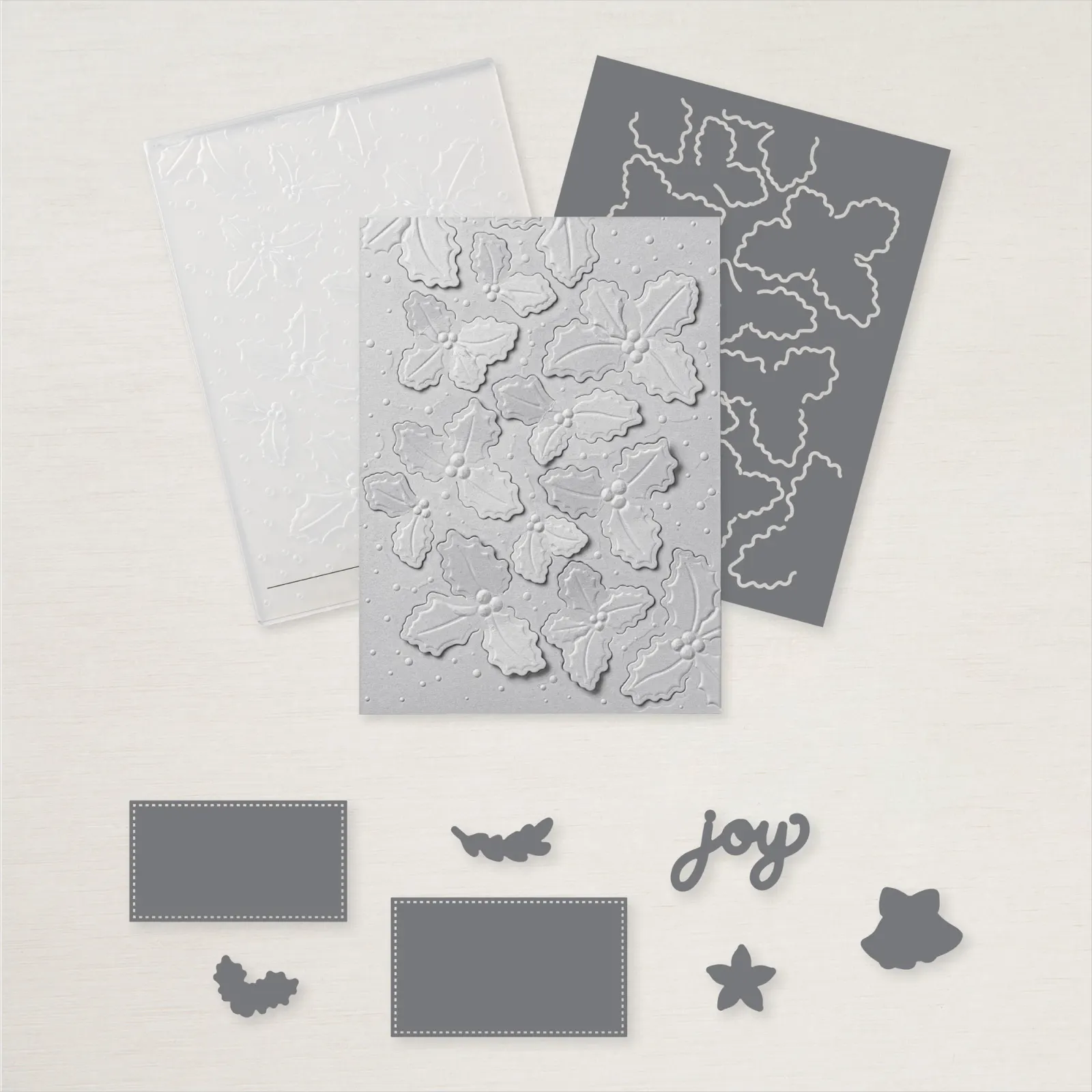 Die Hybridprägeform ist toll, so wie bisher alle diese Formen. Mit ein bisschen Geschick kannst du die Ilexblätter ausschneiden oder du nutzt sie als Kartenhintergrund und schiebst den Gruß darunter.